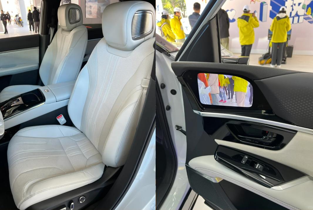 內飾方面,斜躺的縱向中控大屏成為了核心元素,配合獨立的懸浮式液晶屏組成雙屏系統,門板位置還有電子后視鏡屏幕,定下了科技的基調。方向盤有著別致的雙色拼接設計,盤輻上帶有實體按鍵,中央扶手前端下沉,按鍵式電子換擋機構、手機無線充電面板、雙杯架等配置都不會落下。
