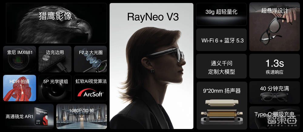 智東西1月7日報道,剛剛,雷鳥創(chuàng)新正式發(fā)布了雷鳥V3 AI拍攝眼鏡,其搭載了雷鳥和TCL聯(lián)合研發(fā)的獵鷹影像系統(tǒng)、通義千問獨家定制的大模型、第一代驍龍AR1旗艦XR芯片、AAC瑞聲科技定制揚聲器,定價1799元。