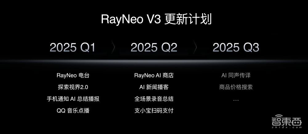 據(jù)了解,后續(xù)雷鳥V3會陸續(xù)上線RayNeo 電臺、探索視界2.0、手機通知AI總結(jié)播報、QQ音樂點播、AI新聞播客、全場景錄音總結(jié)、支小寶掃碼支付等功能。