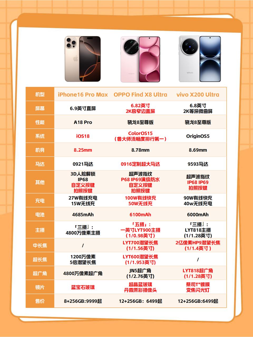 接下來(lái),我們就進(jìn)一步對(duì)比一下OPPO Find X8 Ultra、vivo X200 Ultra和iPhone 16 Pro Max,看看究竟誰(shuí)更適合你?