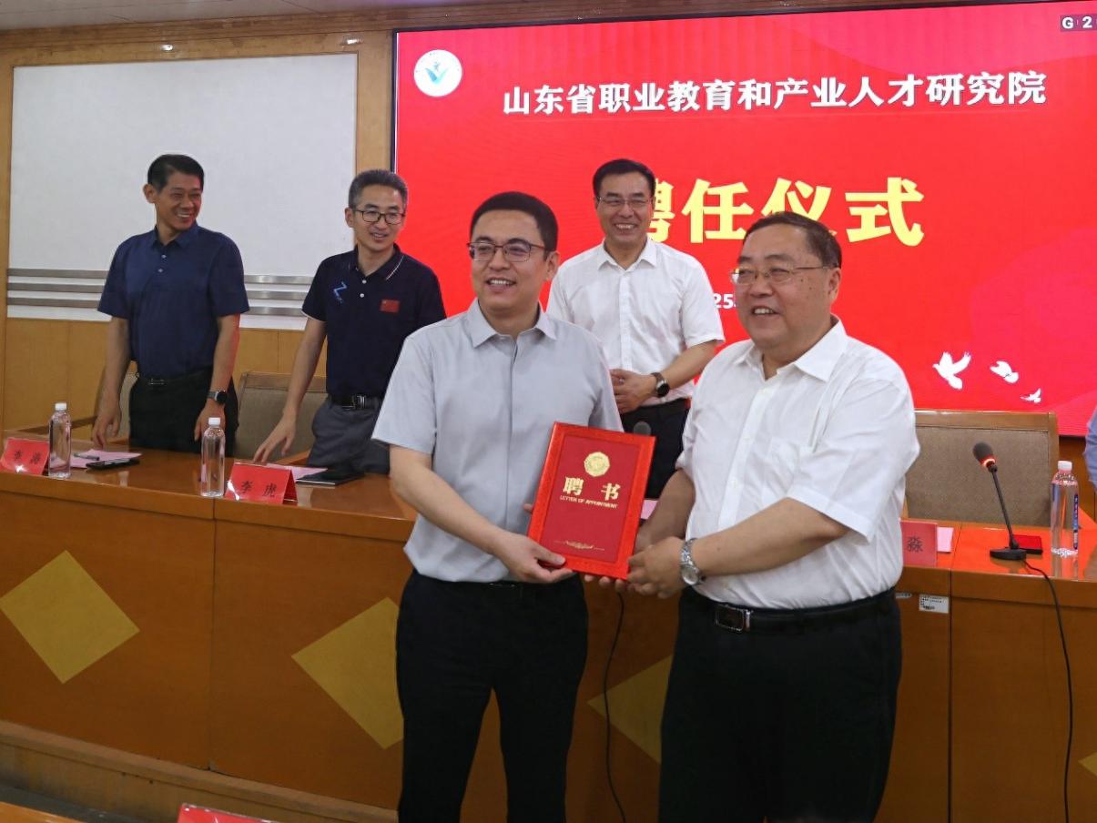 儀式上山東省職業教育和產業人才研究院聘任張淼為山東省職業教育和產業人才研究院專家咨詢委員會委員,孫偉為產業副院長,并頒發聘書。