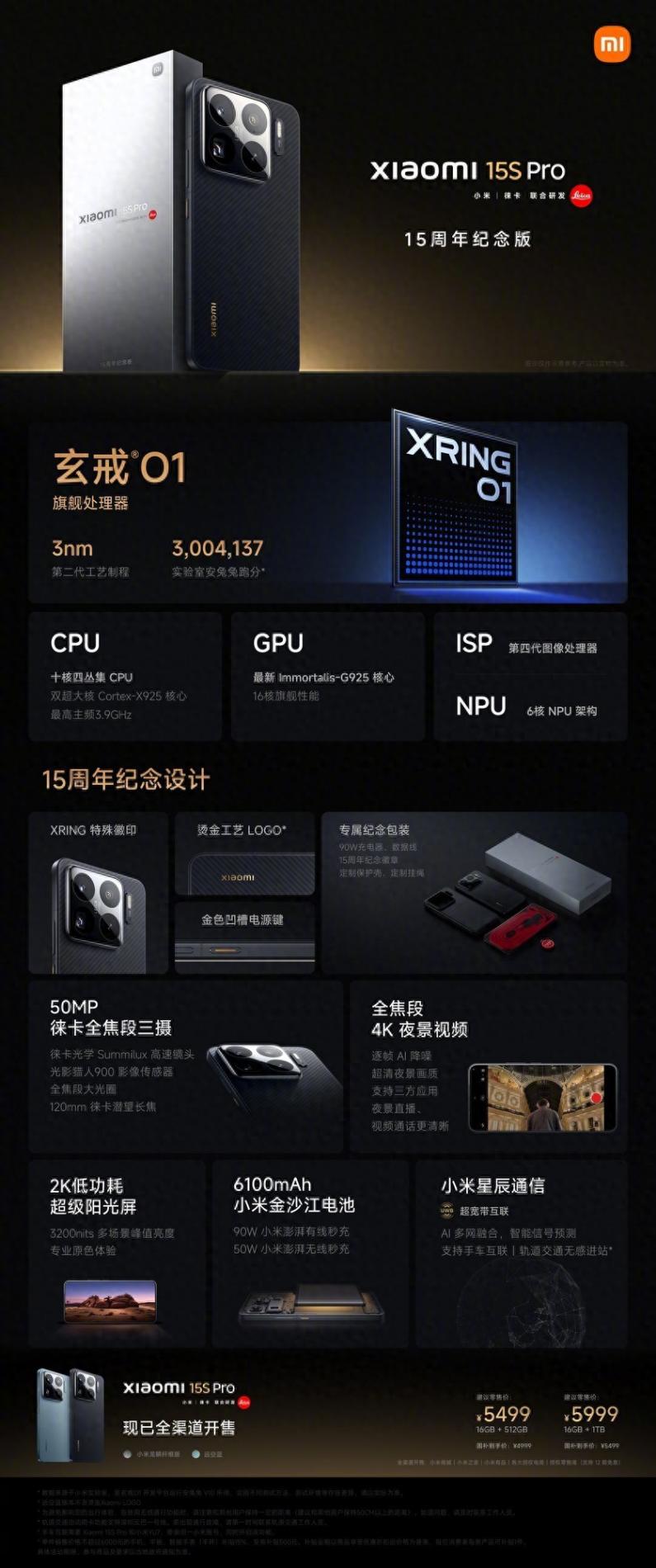 在外觀設計上,小米15S Pro精心定制了15周年專屬紀念設計,獨特的元素融入其中,不僅彰顯了小米15年來的發展歷程,更讓手機具備極高的辨識度與紀念意義。