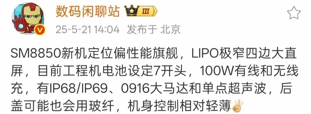 首批搭載驍龍8 Elite 2:基于SM8850項目,性能較前代提升超20%,跑分有望達400萬水平。