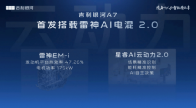 技術層面,銀河A7搭載雷神AI電混2.0系統,實現能效與動力的平衡。官方數據顯示,其混動專用發動機以47.26%的全球量產最高熱效率切入賽道,匹配11合1電驅模塊(綜合效率93.1%),CLTC工況下饋電油耗低至2.67L/100km。按當前油價測算,每公里成本僅約0.2元。更關鍵的是,星睿AI云動力系統通過實時分析路況與駕駛習慣,可在純電、增程、混動、性能四種模式間無縫切換。實測數據顯示,全路況節能效率較傳統混動系統提升5%,打破“省油必犧牲動力”的固有認知。