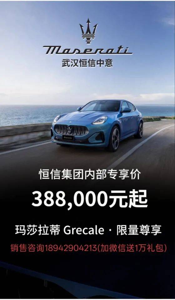 近日,名為“上海浦東瑪莎拉蒂”的賬號發(fā)布海報稱,瑪莎拉蒂的SUV車型Grecale限時尊享價38.88萬元起,活動時間截止到今年9月30日。