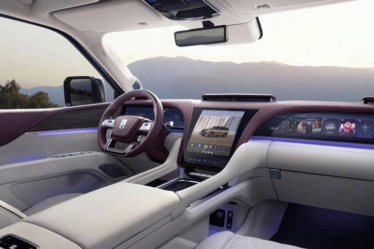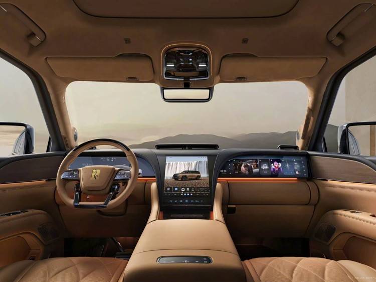 新車目前帶來白紫以及黑棕兩款內飾配色,內飾基本傳承了此前U8的設計,整體采用對稱式造型,整個中控幾乎被屏幕所覆蓋,包括23.6英寸液晶儀表屏+12.8英寸中控屏+23.6英寸副駕娛樂屏,科技感拉滿。大面積的皮質包裹、菱形格縫線的座椅等等也進一步強化了新車的這種豪華感。