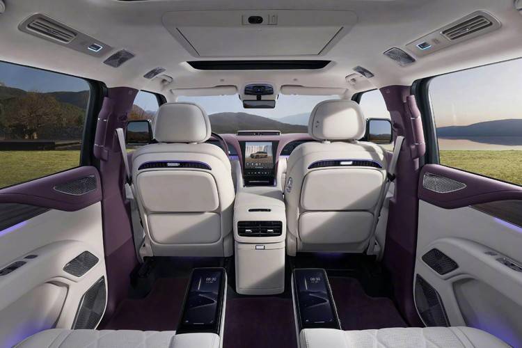 由于尺寸加長帶來了更大的座艙空間,所以這臺U8L使用了2+2+2的6座布局,這和此前U8的5座布局有所區別。新車第二排配備零重力座椅,提供了扶手屏,包括二排小桌板、吸頂屏、前后雙電窗等配置一應俱全,舒適性堪比MPV。