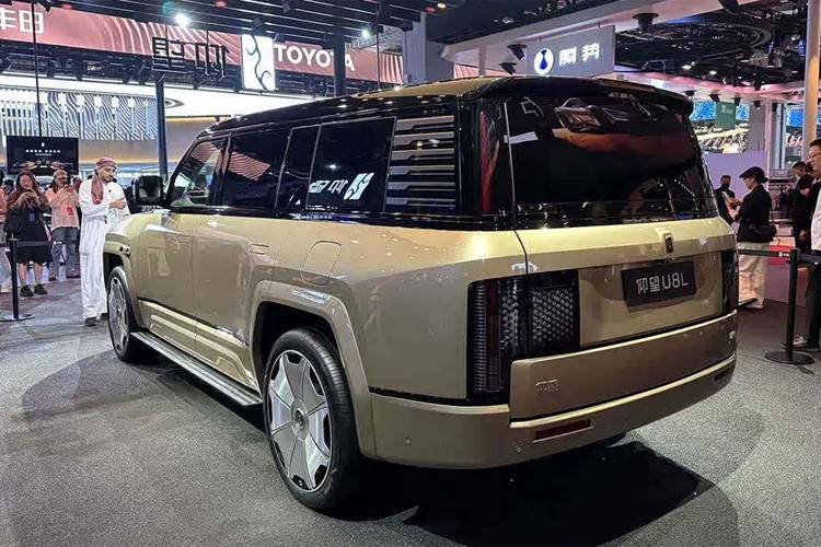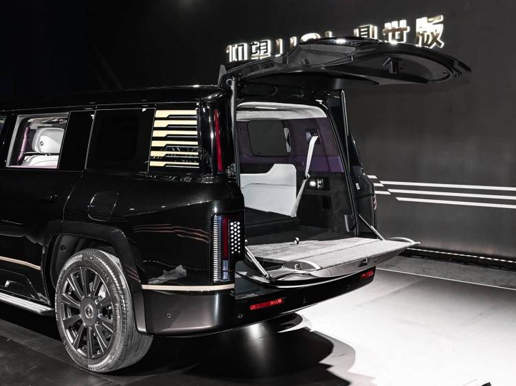 除了提供更尊的雙色配色之外,其前后車標均為24K黃金打造,包括為新車設計的全新23英寸八孔鍛造輪圈等等都進一步強化了整車這種尊貴感。除此之外,它取消了U8上的外掛式備胎,尾門也改為上下對開式設計,下尾門可當成“攬景座“,最大承重200kg。