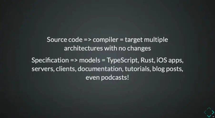 如果大家寫過 Type 或者 Rust,那么代碼總會經過編譯器被編譯或轉換成二進制文件。這個二進制文件不重要,源規范才是核心所在、才是真正有價值的部分。