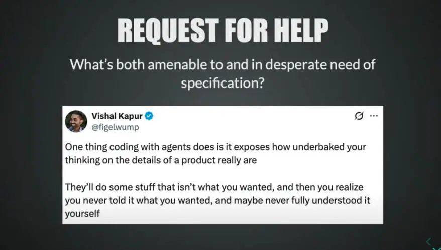 Vishal Kapur:與代理一起編碼的一點是,它暴露了你對產品細節的思考有多么不成熟。它們會做一些你沒要求的事情,然后你意識到你從未告訴它你想要什么,甚至可能你自己也從未完全理解過。