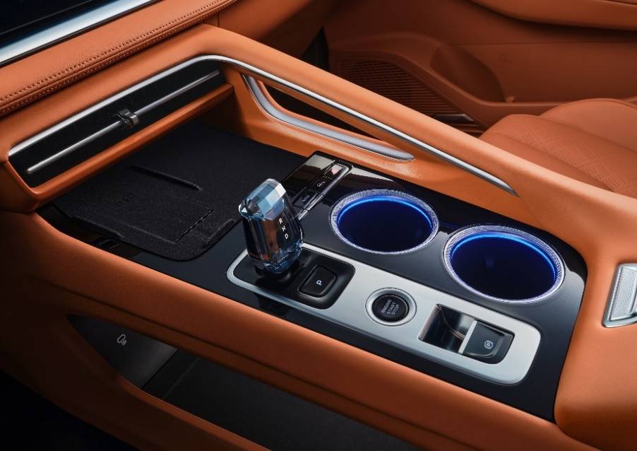 內飾方面,新車采用環抱式座艙,提供如意橙和福祿灰的雙色主題,大尺寸的中控屏幕,以及座椅中控區域等處的軟性皮質包覆,甚至新車還配備了3D鐳雕水晶擋整體看上去更加簡約、豪華。此外,全新博越還配備了同級最多12個發光區域的高山流水·音響氛圍燈,256色光影流轉,支持呼吸、漸變、開門迎賓、音樂聯動、駕駛聯動等九大功能。