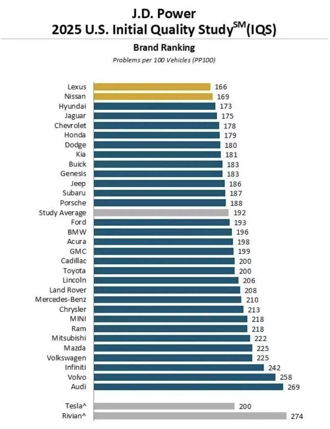 長期在海內外各大排行榜上霸榜,足以佐證雷克薩斯的硬實力。在 J.D. Power 公布的 2025 年美國新車質量調查(IQS)中,雷克薩斯以優異成績奪得全品牌第一,成為問題最少的汽車品牌,領先所有豪華與主流品牌,展現了雷克薩斯對于產品可靠性與制造品質上的長期堅守與優勢。