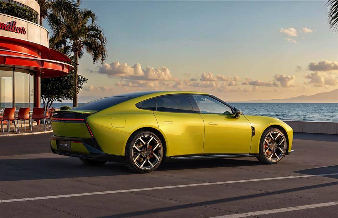 外觀方面完全脫離現款P7的設計,是一臺脫胎換骨的新車。車頭H樣式的燈組設計,營造出很好的未來感。車身造型更是極為低趴,A柱變成了隱藏式設計,這一理念見到的還真不多。前后側翼子板自帶寬體視覺效果,車身尺寸方面,新車長寬高分別為5017/1970/1427mm,軸距為3008mm。比現款P7整整大了一圈,值得一提的是高度只有1米4多一點,比小米SU7還要更低趴一些。