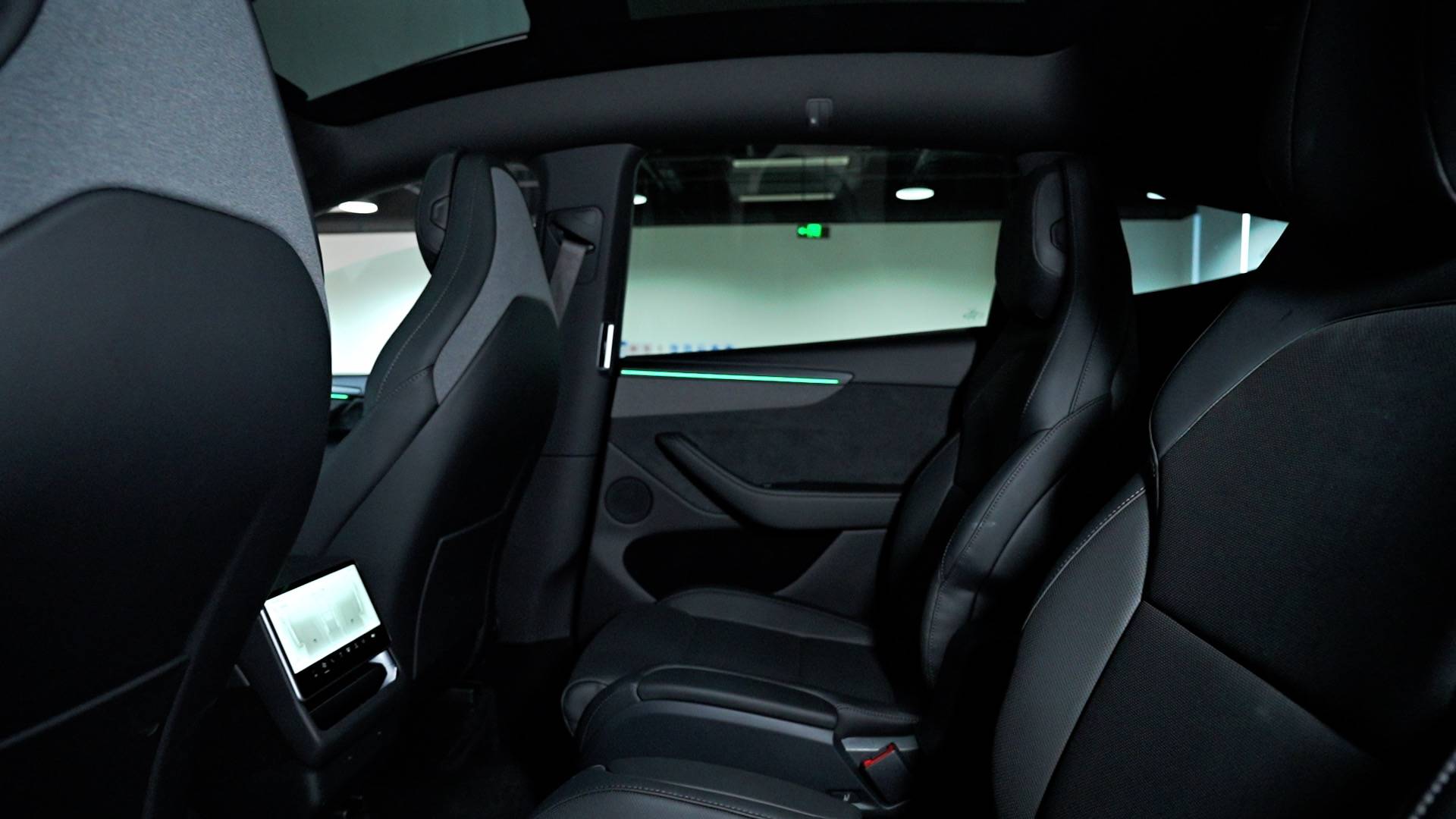 中央通道的存在,讓Model YL進出第三排的便利性優于七座車型,不過因為縱向空間不高,通道的寬度也一般,而且二三排地板還有落差,所以對乘客的體型和靈活度還是有要求。但綜合來說,特斯拉給到的第三排座椅舒適度是合格的,除了坐墊長度偏短外,靠背能支撐腰身,填充也不是特別單薄,保障了基本的舒適性,中短途使用沒壓力。配置方面,Model YL在第三排也提供了加熱功能,C柱設置了空調出風口,座椅下方還有獨立的充電口,也支持兒童座椅安裝。另外,Model YL的第三排也覆蓋了安全氣囊,特斯拉還增加了底板鋼梁,強化整車剛性,沒有失去對最后一排乘員的保護欲。