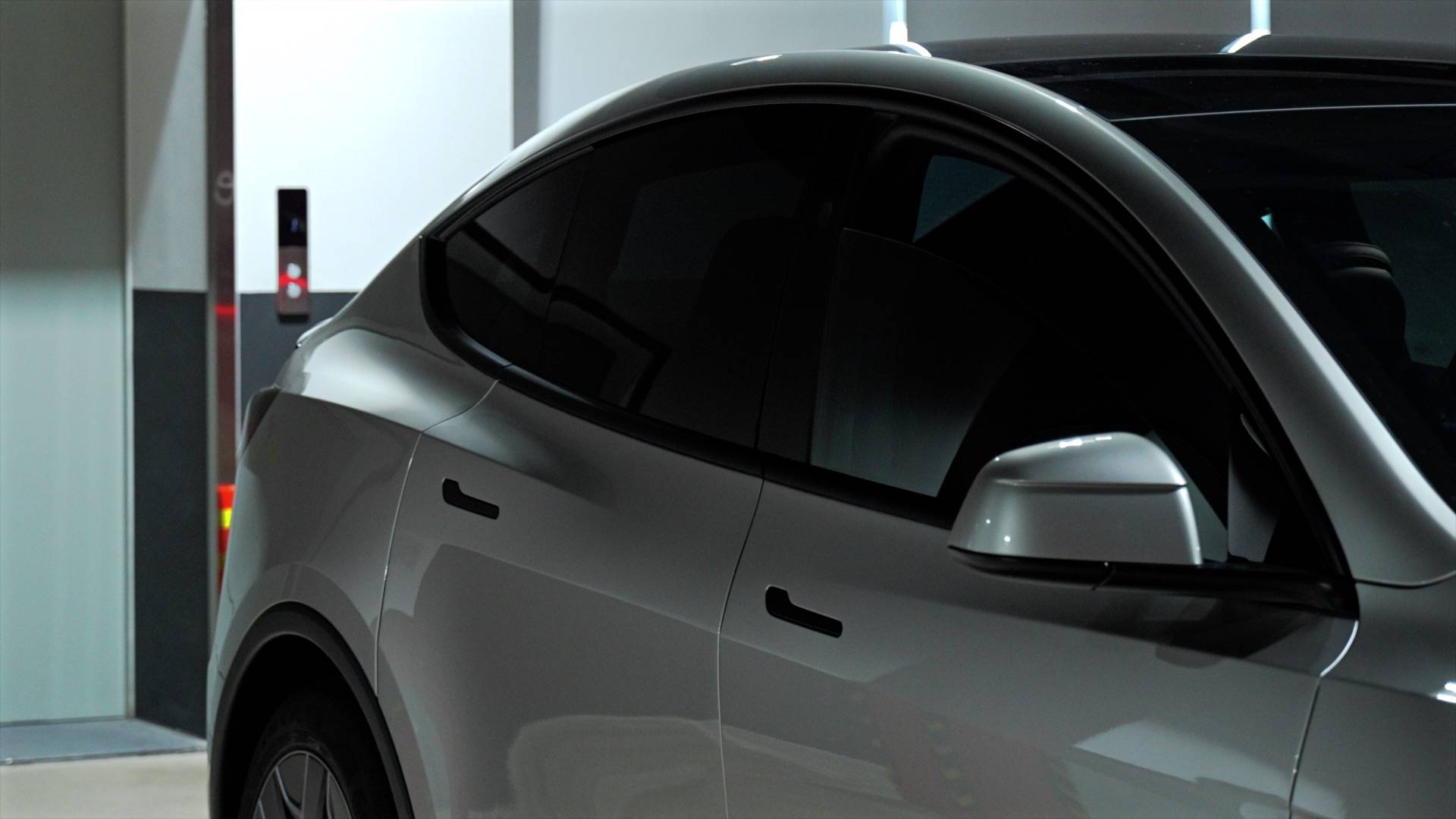 是的,坐在Model YL的第三排時,和過去Model Y的七座版一樣,你的頭頂就是玻璃。好消息是,這盡可能地優化了頭部空間,也可以和加大的三角窗結合,給第三排乘客帶來更通透的視野,但毫無疑問,這也對特斯拉后窗鍍銀玻璃的隔熱能力提出挑戰。