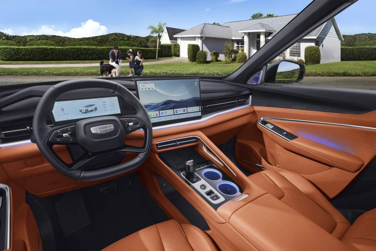 尾部造型擁有較為豐富的層次感,采用了時下流行的貫穿式尾燈,兩側燈組向兩側延展,在點亮后進一步凸顯出科技感,而下方的“GEELY”則起到了點明品牌,以及提升辨識度的作用。新車的后包圍采用了大面積的熏黑處理,加上雙邊四出式圓形排氣布局,使得新車整車的運動格調得到了進一步的統一。