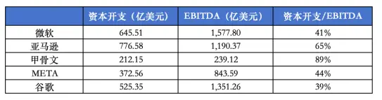 圖:海外巨頭最新財年資本開支(現金流量表口徑)、EBITDA測算 資料來源:Wind,36氪整理
