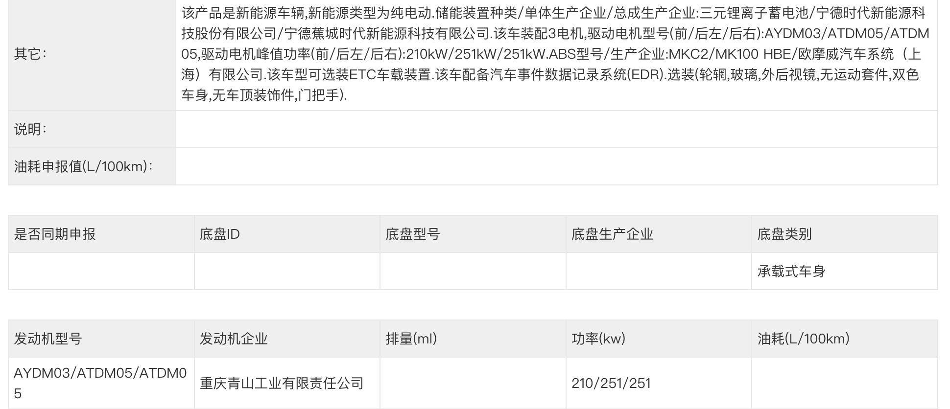 而在阿維塔12純電版的動力部分,車企則提供了青山工業的雙電機、三電機兩種方案:雙電機版本是后置了兩個251kW的電機,而三電機版本則后驅基礎上,額外增加了210kW的前電機,實現了“易三方”的效果。對比現款阿維塔12后驅版237kW、四驅版402kW的總功率,新車型在動力表現上應該能有翻天覆地的進步——尤其考慮到阿維塔12原本就有增程版6.8秒、雙電機純電版3.8秒的0-100km/h性能,新車在動力升級的同時,整備質量變化很小,估計又會成為千匹馬力之下的加速王者。