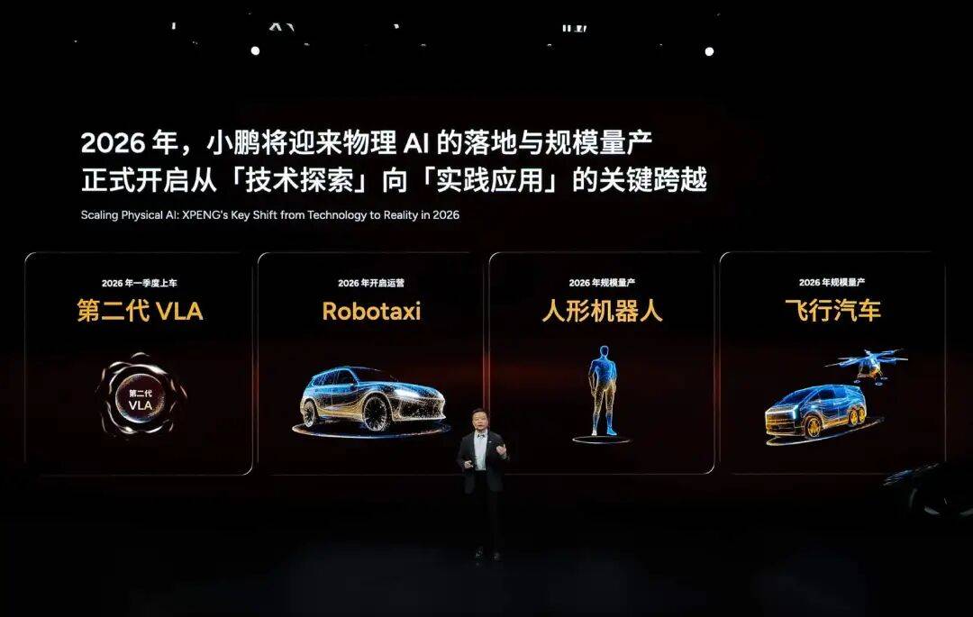 何小鵬表示,2026年小鵬汽車將推動物理AI落地與規模化量產,正式完成從“技術探索”到“實踐應用”的關鍵跨越。